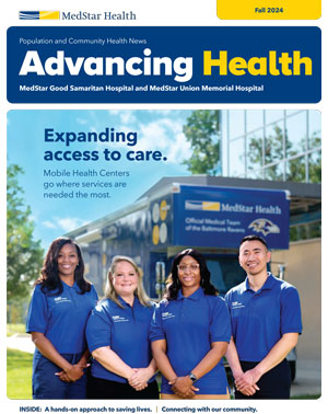 Our Care Transformation team at MedStar Health continues to work for the communities we serve. We’re living our mission every day by bridging gaps in health care and connecting the populations we serve with resources to enhance their health and wellbeing. One of the ways we are working to reach neighbors who need support is through Advancing Health, a free newsletter from MedStar Health, Baltimore region. Advancing Health is sent to neighbors living in targeted areas near MedStar Franklin Square Medical Center, MedStar Good Samaritan Hospital, MedStar Harbor Hospital, and MedStar Union Memorial Hospital, according to each hospital's Community Health Needs Assessment (CHNA). Our goal is to reach those communities that need us the most.