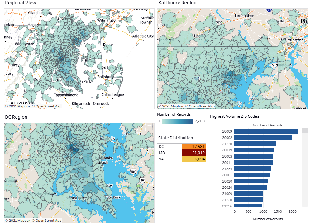 MedStar eVisit Zip Codes Served, March 2020-June 2021 (Click image to enlarge)